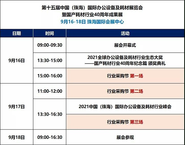 第十五屆中國(guó)(珠海)國(guó)際辦公設(shè)備及耗材展覽會(huì)暨國(guó)產(chǎn)耗材行業(yè)40周年成果展將于9月16—18日在珠海國(guó)際會(huì)展中心隆重舉辦!